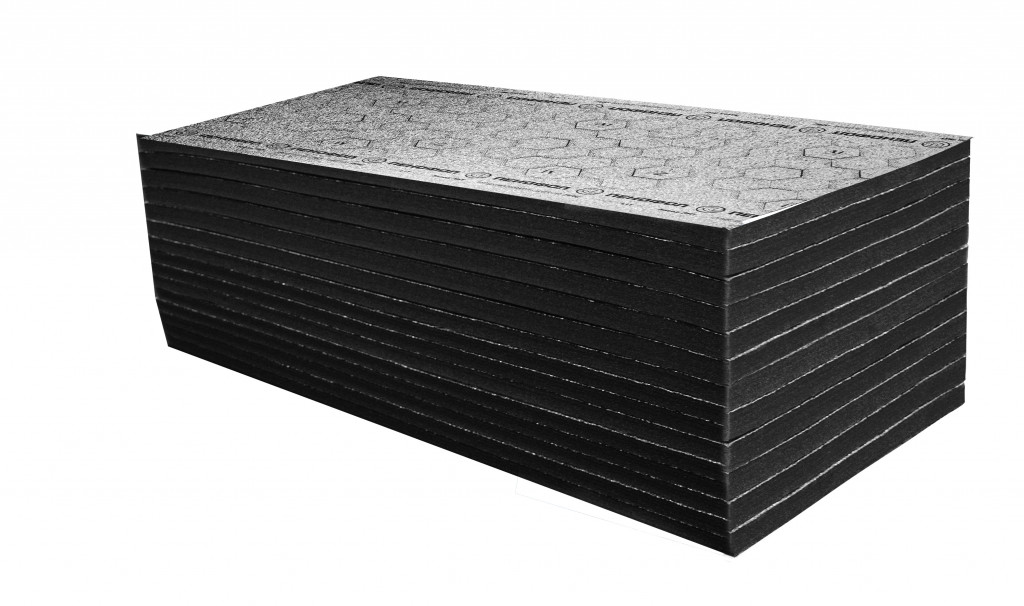 ПЕНОФОЛ Евроблок — материал из вспененного полиэтилена черного цвета с закрытой ячеистой структурой, изготовленный в виде матов стандартного размера 600х1000 мм, толщиной 30 мм. С одной стороны дублирован полированной алюминиевой фольгой с защитой от подделок – универсальной печатью.